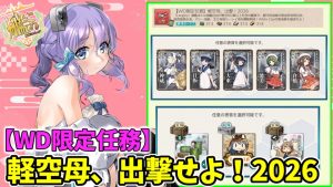 出撃海域 1-3/1-4/1-5/2-3各2回A勝利以上 指定艦 旗艦:春雨・春風・春日丸・弥生・陽炎・天津風・朧・曙・榛名・Scirocco随伴:春雨・春風・春日丸・弥生・陽炎・天津風・朧・曙・榛名・Sciroccoか… - 【WD限定任務】軽空母、出撃せよ!2026攻略【任務編成】【2026年期間限定】