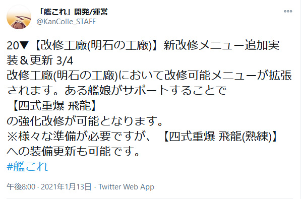 改修更新すると撃墜回避補正もある飛龍熟練に更新も出来るが素材がなかなか大変