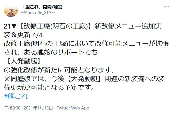 これは今後の予告らしいですが大発動艇の新たな更新が今後実装あるそうです