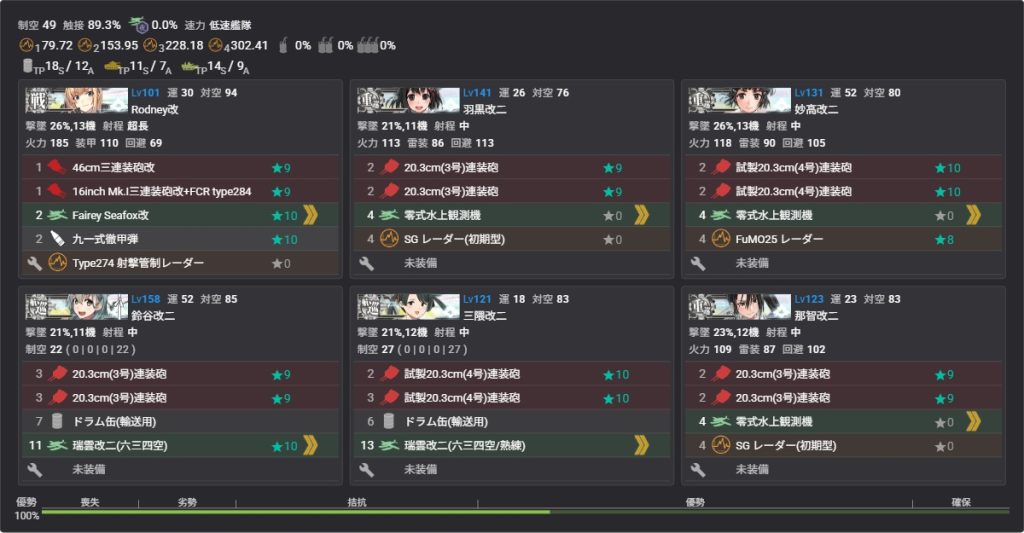 • 索敵(分岐点係数1で索敵スコア49以上)