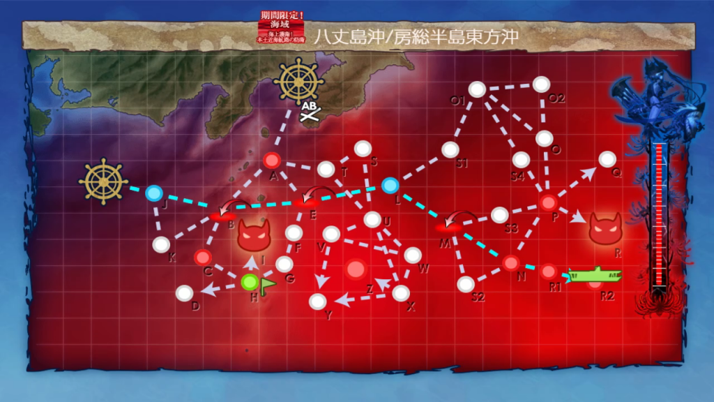 ただし一つ前のR1マスが潜水新棲姫マスなので基地航空1部隊東海に変更と第二艦隊にある程度対潜装備をさせておきましょう