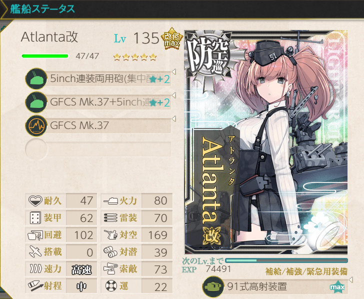 最後に対空カットイン艦 アトランタが理想ですが、いなければ摩耶改二、秋月型やフレッチャー級から編成