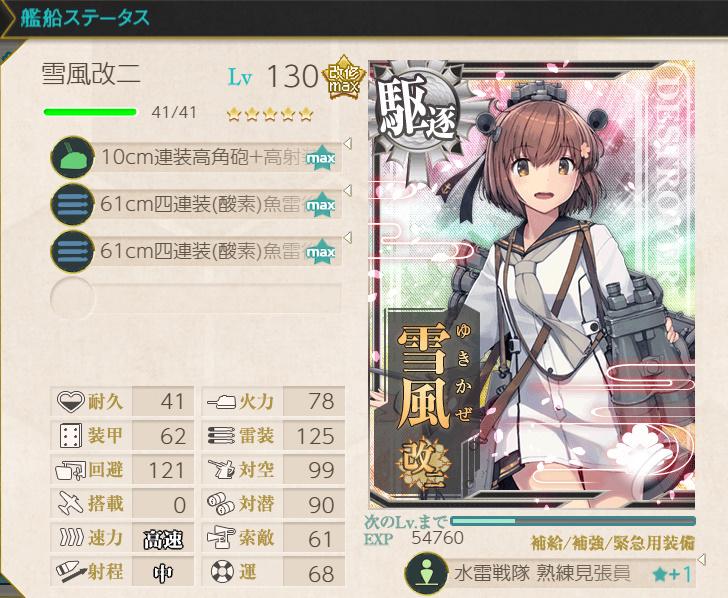 航空戦、支援艦隊、先制雷撃4本でここでの事故は0でした