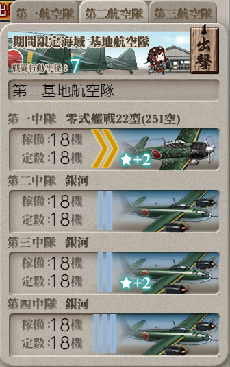 基地航空送る場合行動半径8になるので陸戦を入れて送る場合は半径伸ばす必要があります