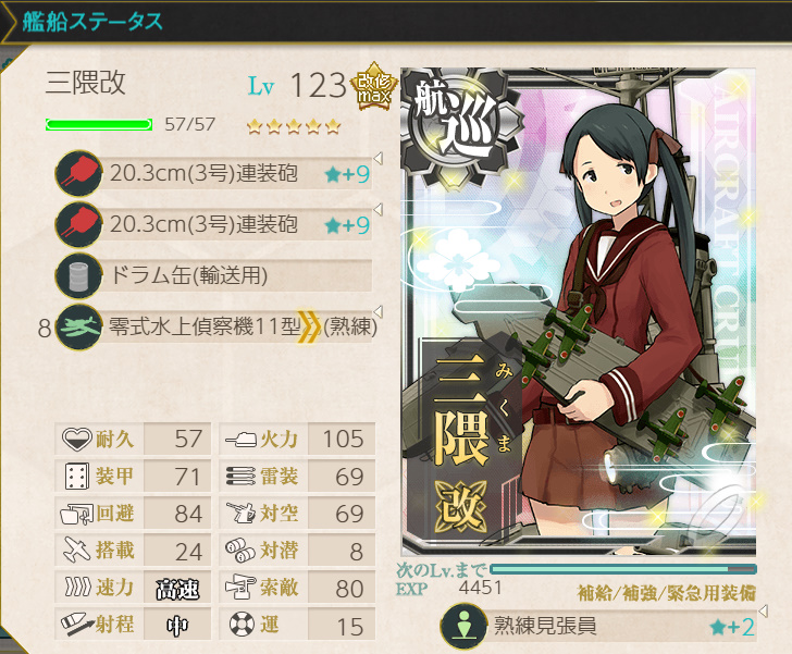 艦載機特効が強力なので上手くいくとボスも昼撃破が可能です