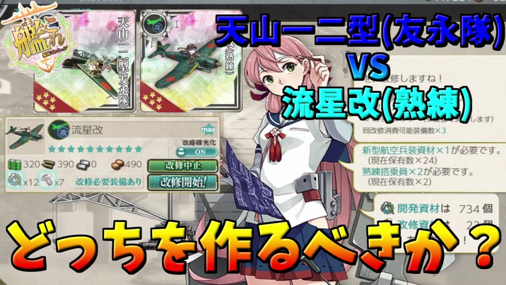 流星改(熟練)と天山一二型(友永隊)どちらを改修して作るのが良いのか?