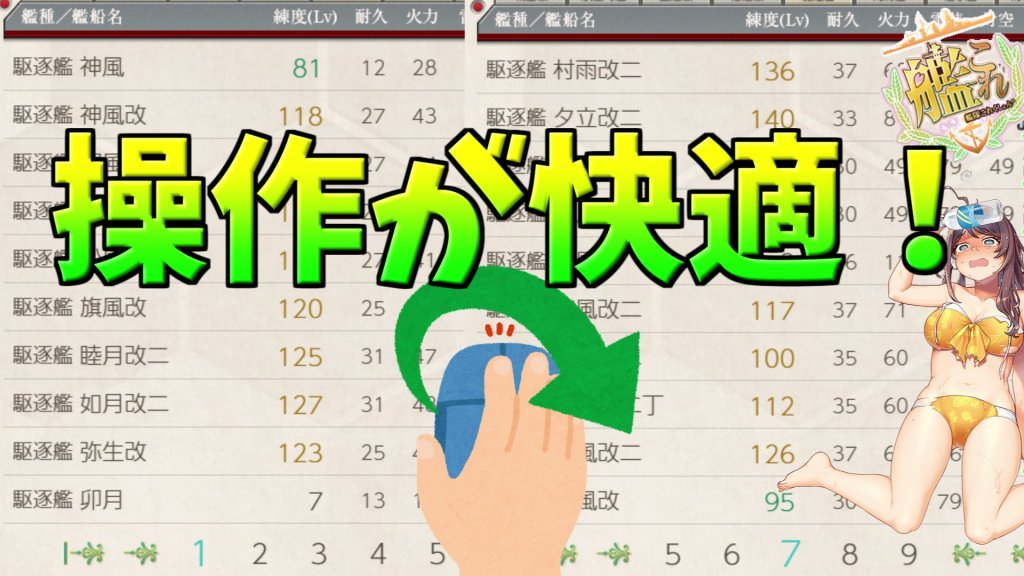 運営ツイートが4つありますが、単純に編成や装備変更画面の様なページ数が表示されている箇所は全てマウスホイールで移動が出来る様になりました