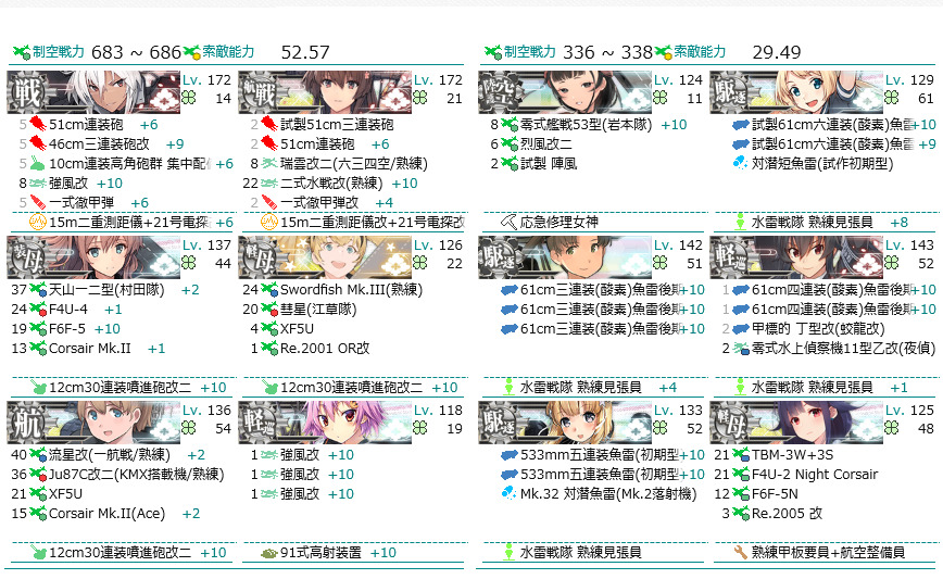 ギミック用の空母機動部隊もE6で使う正規空母や戦艦を採用して攻略可能