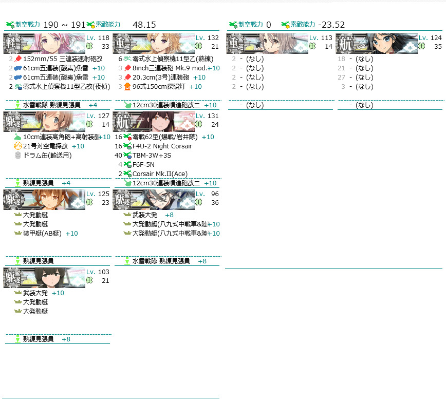 ここで追加するとしたら装甲破砕後は純粋に夜戦火力高い艦が強いので駆逐に綾波を追加