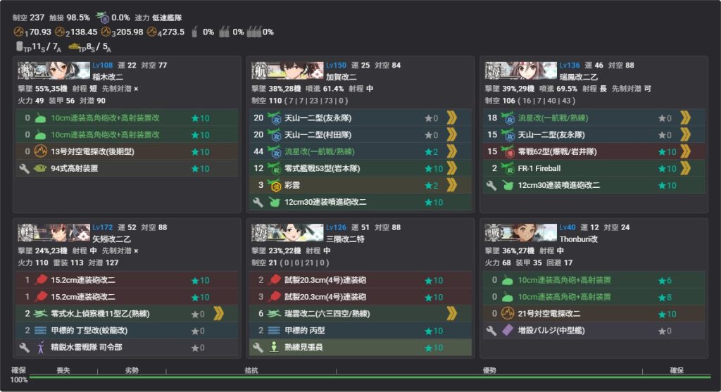 基地航空隊:制空拮抗の制空66程度に調整しつつ、陸攻配備航空戦艦1軽空母1