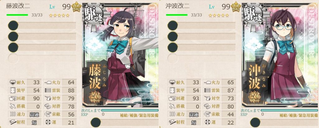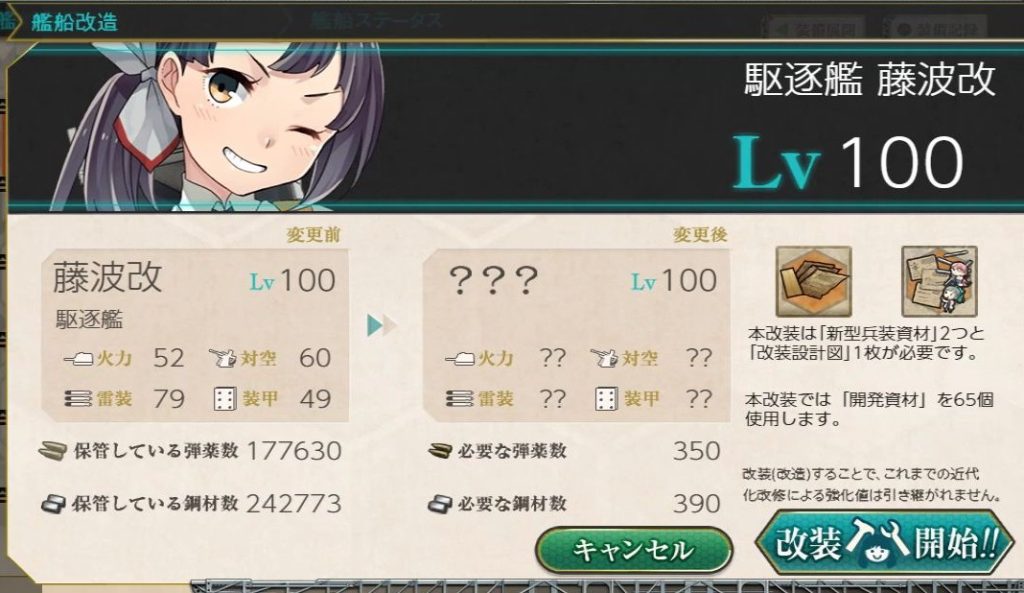 藤波改二改装に戦闘詳報がいらないので新型兵装資材使って戦闘詳報を増やしたり、強力な装備入手できるので、艦隊状況で報酬の入手優先度が高いなら早めに改装をしておきたい