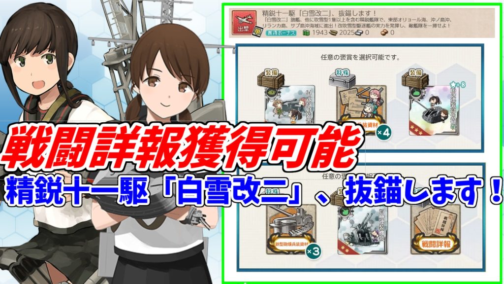 白雪改二は大発系統装備可能、その他吹雪型では磯波改二、深雪改二、浦波改二が大発系統装備可能なので指定艦はこの中から編成推奨