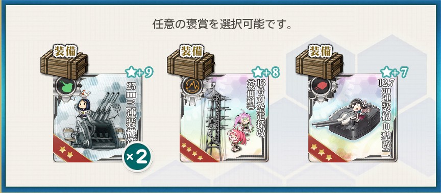 他の2つは持参する艦がいる分、電探より入手が簡単なので電探を選択しましょう