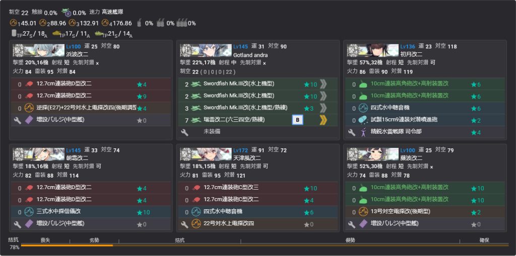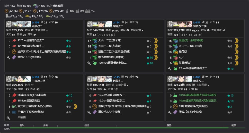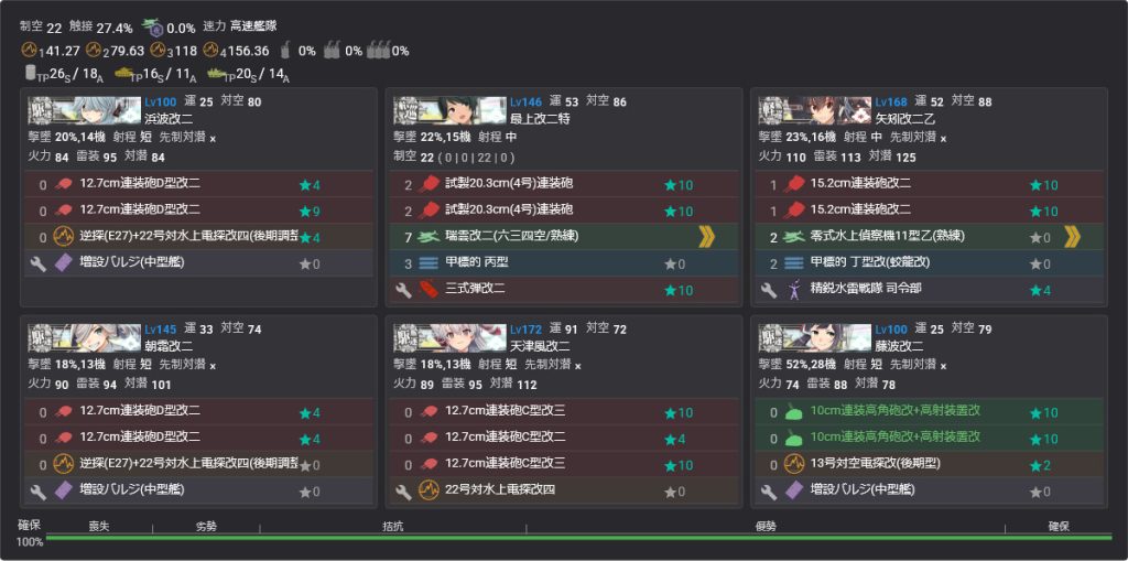 航巡:主砲2水爆1で1戦目、ボスの制空+昼連撃装備