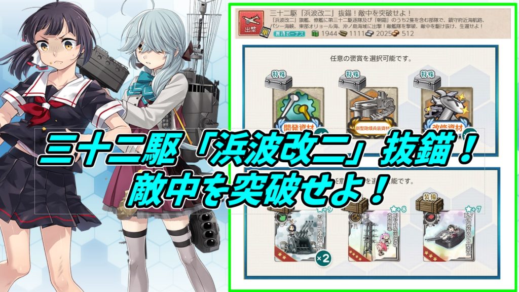 改二任務の中では浅い海域が多いので難易度が低いが貴重な装備が入手できるのはありがたい