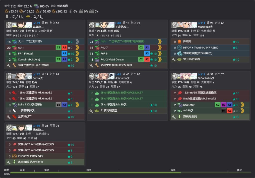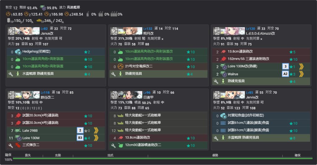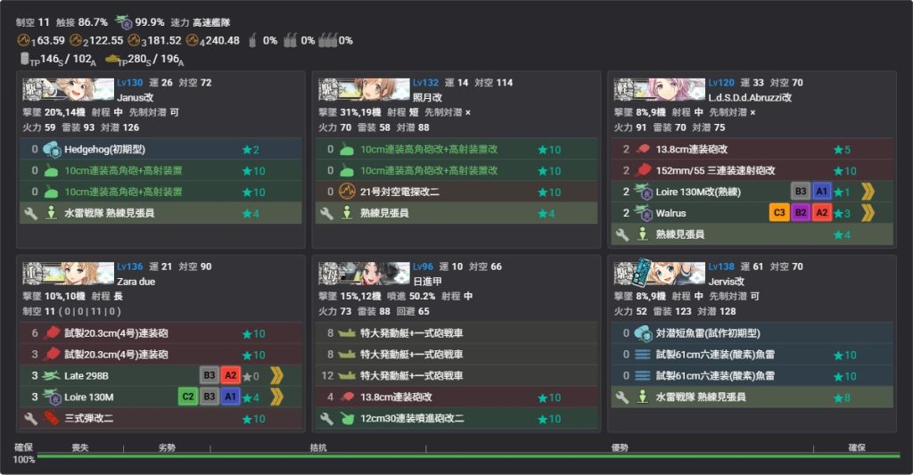 E2-3甲は戦力を温存すると苦戦する海域なのでオート先制対潜かつ特効の高いJ級2隻で難易度がかなり変わると思います