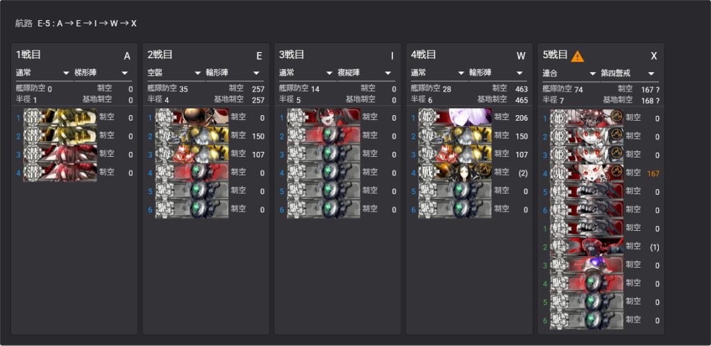 A潜水→E空襲→I通常→W通常→索敵→Xボス