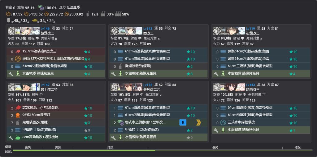 時雨は1戦目の潜水マスの東海と合わせて確実にS取ってキラ維持させたいのでソナー1積み