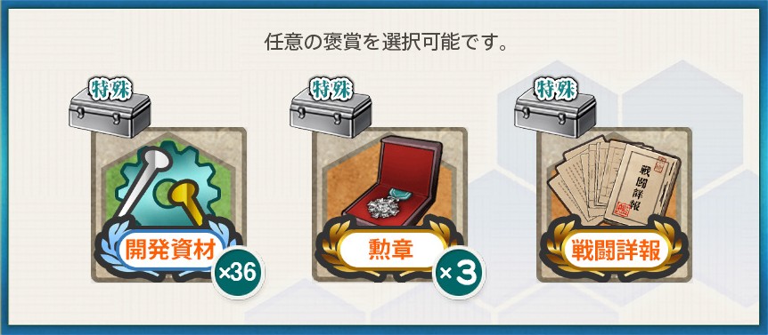 選択報酬1:開発資材×36(1620円)・勲章×3・戦闘詳報