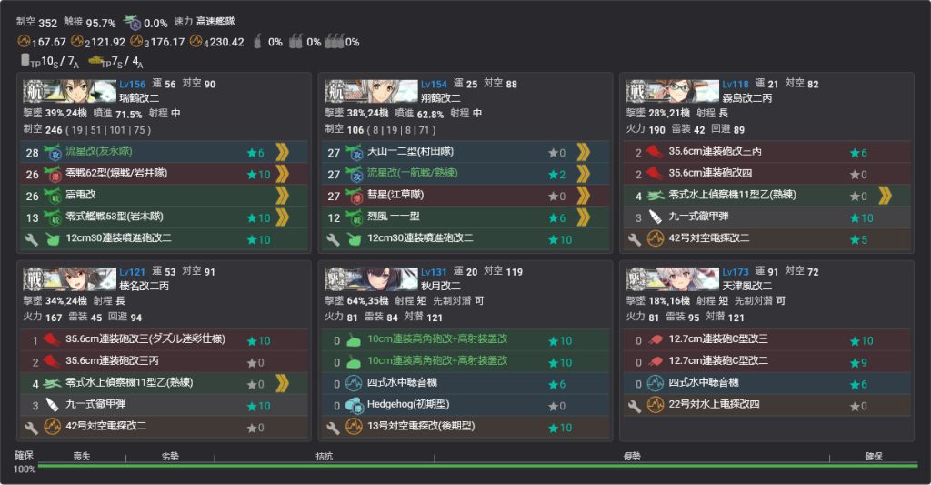 空母:道中全マス航空優勢の制空84(確保168)以上に調整