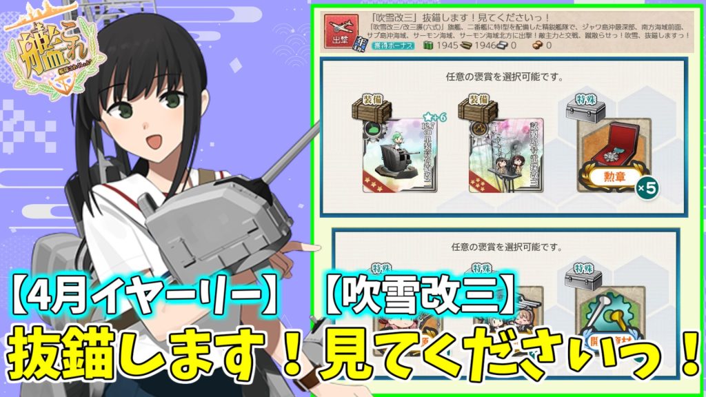 任務以外での入手方法は雪風改二が初期装備で★4を持参、または12.7cm単装高角砲(後期型)から改修更新