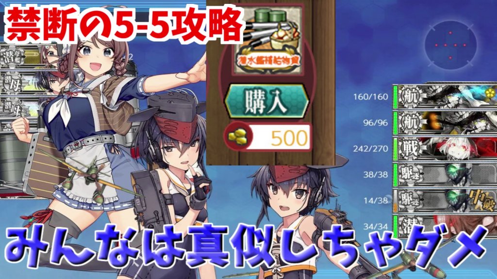 今回は潜水母艦の特殊攻撃を使って5-5が攻略出来るんじゃないかと思い、実際にやってみた編成を紹介