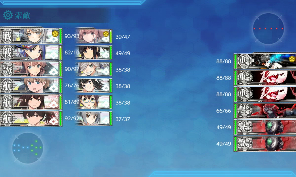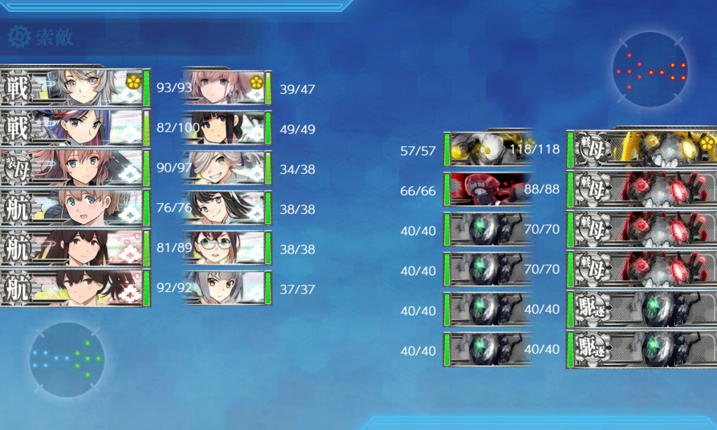 第一艦隊は航巡旗艦で司令部で退避と一応水戦複数装備させてましたが無駄なので水戦1つだけ装備させて通常戦闘とボスで制空確保取るだけ良いです 残りは水母や駆逐に大発やドラム艦を装備