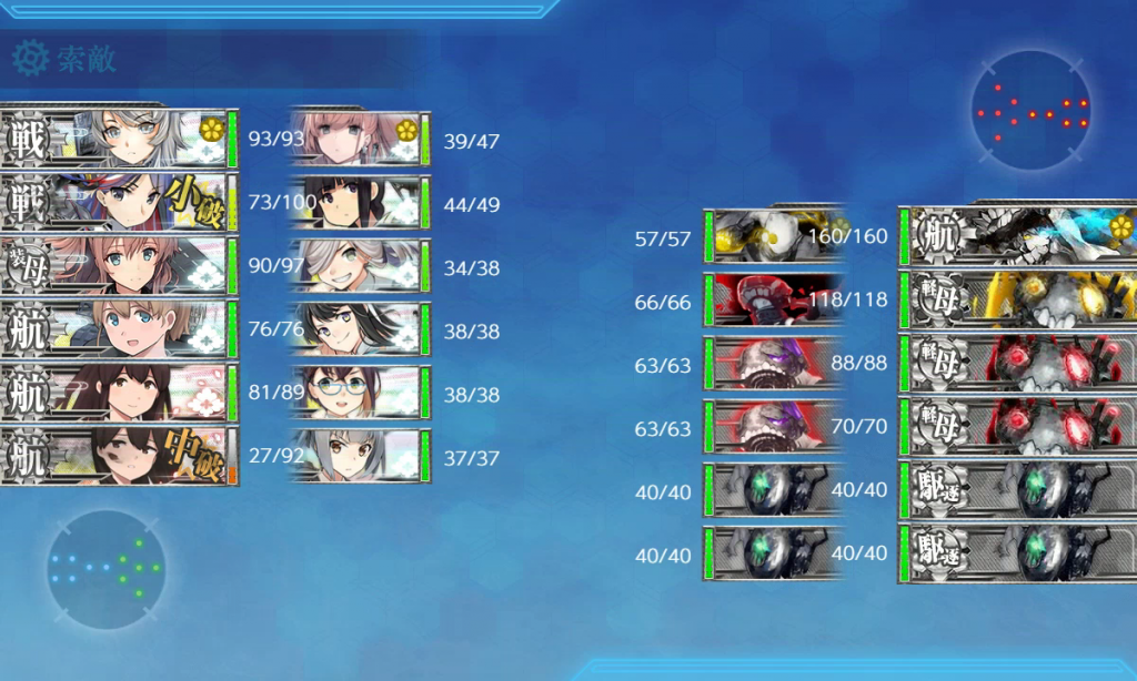 連合艦隊だと夜戦でも潜水艦にダメージ通るので倒しきれる むしろ基地で下3隻倒せないと残る可能性あり ここでのT不利での火力低下回避も考えて彩雲あると良い
