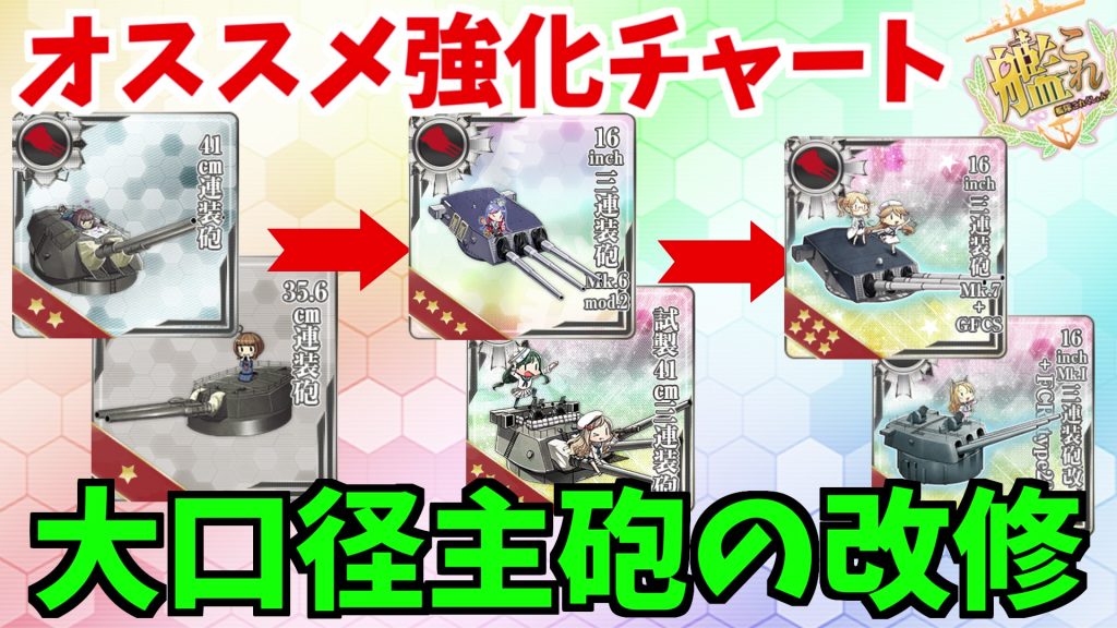 そこで今回は大口径主砲の入手チャートや改修について解説していきたいと思います。