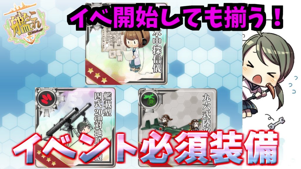 以前「初イベントクリアに育成すべき艦種別オススメ艦解説」をしましたが、今回はこれの装備編という事でやっていきたいと思います