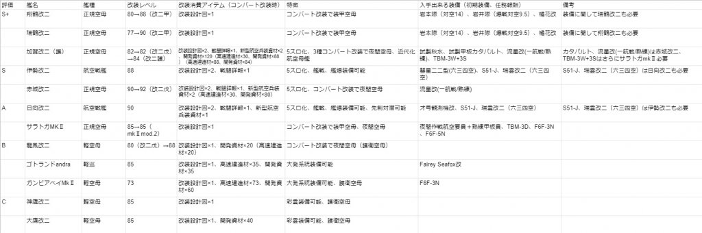 対地装備が出来て遠征での大発要員にも出来たりと面白いですが、試製甲板カタパルトを使った改装になるのでやはり優先度は低くなるかと思います。