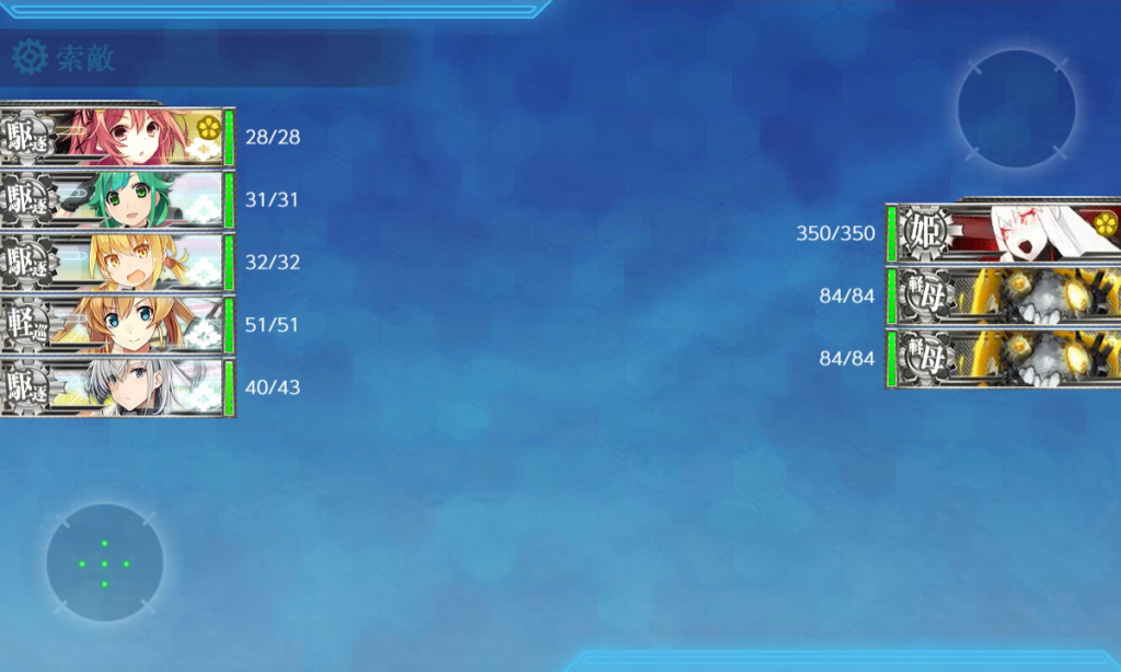 また1ゲージ目最短ルートなら踏みませんが海域全体を通して空襲マスが多くあるので対空カットイン艦を入れておきたい