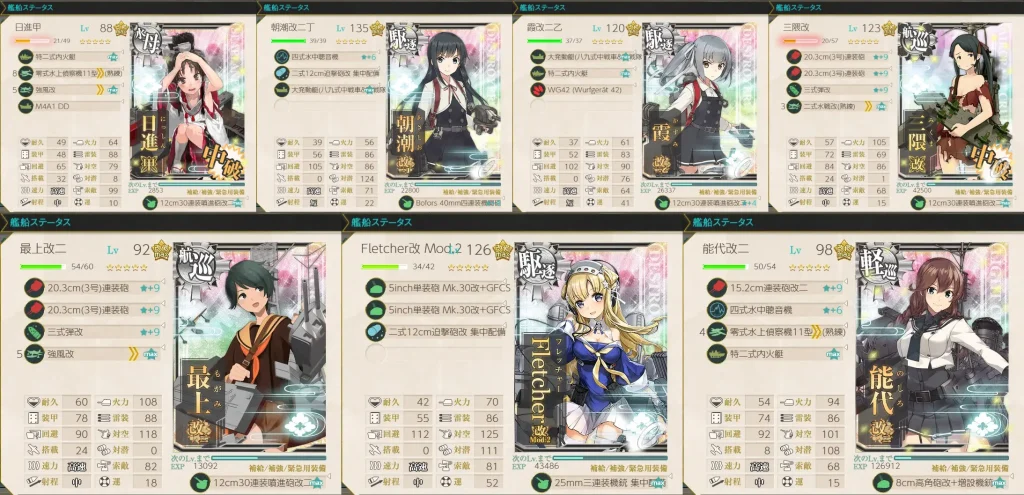 軽巡は能代使ってますがこの後の海域で特効あるので使わない方が良いです