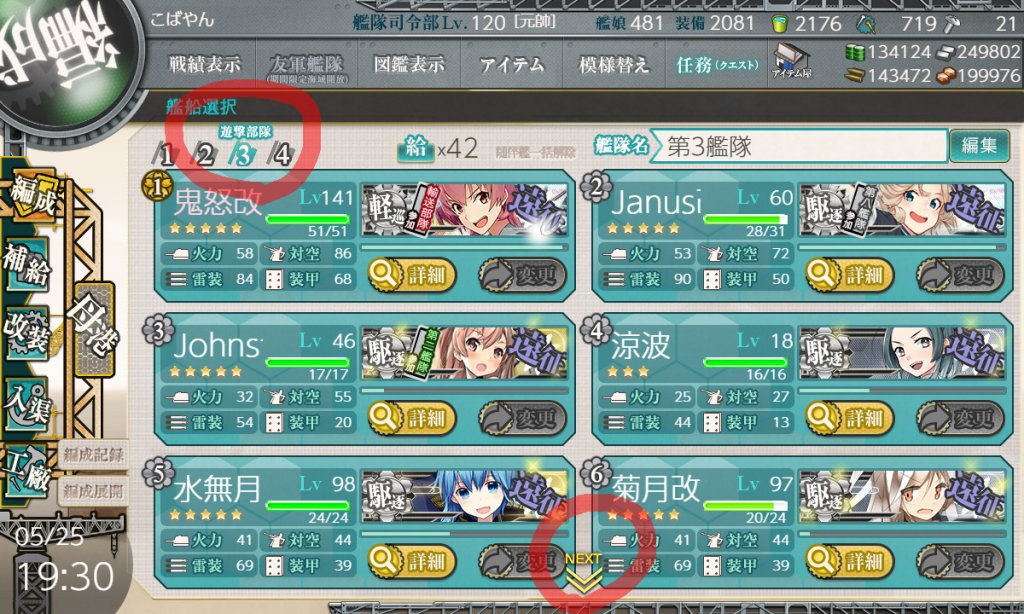 通常艦隊、第三艦隊の遊撃部隊で出撃 遊撃部隊