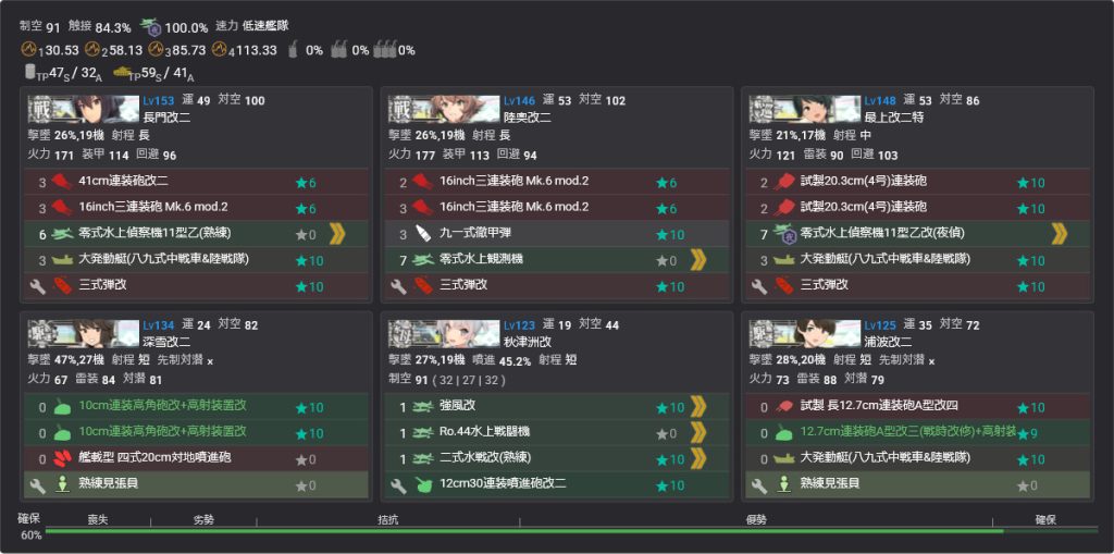 秋津洲:基地航空隊合わせて、水戦3でボスマス強編成以外航空優勢以上に制空90程度に調整