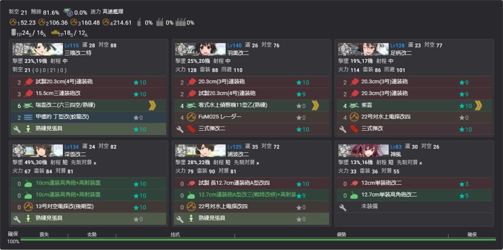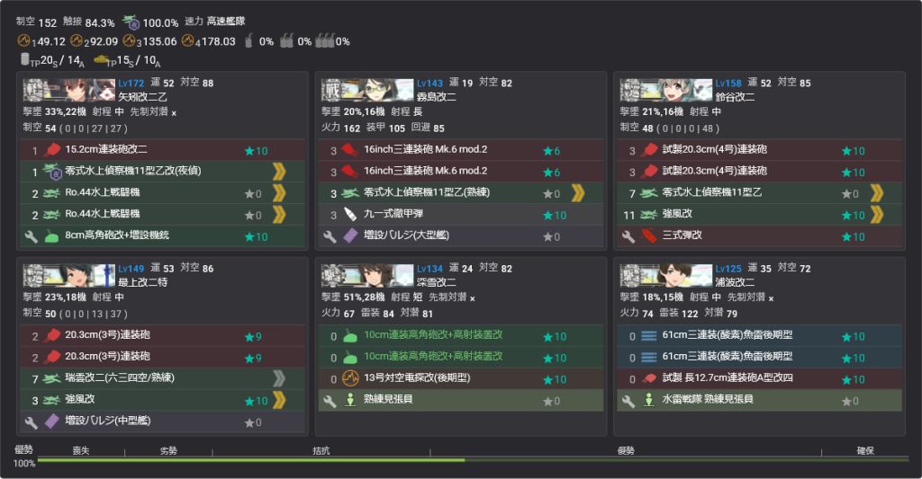 航巡:主砲2水偵(水爆)水戦で制空調整