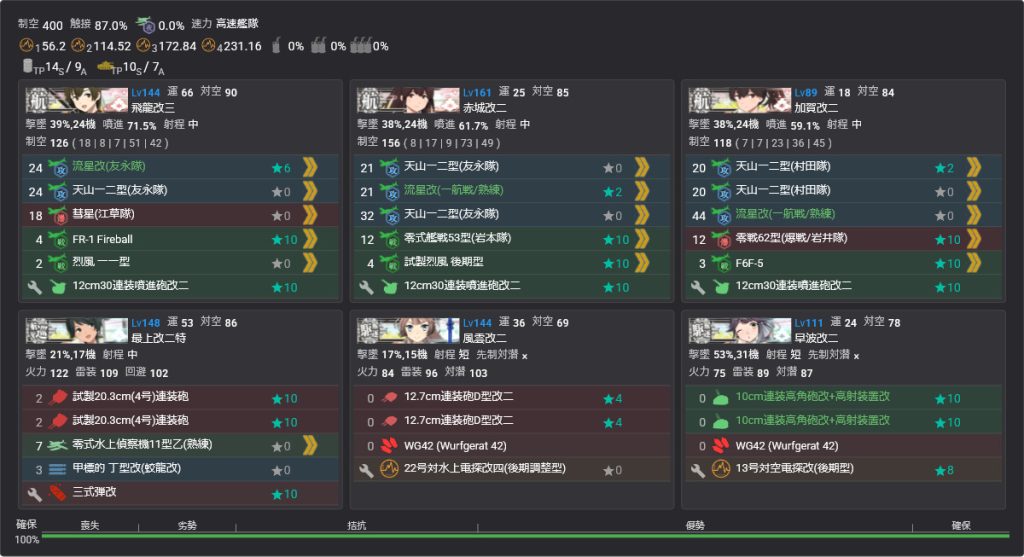 空母:全マス航空優勢以上に制空210ぐらいに調整