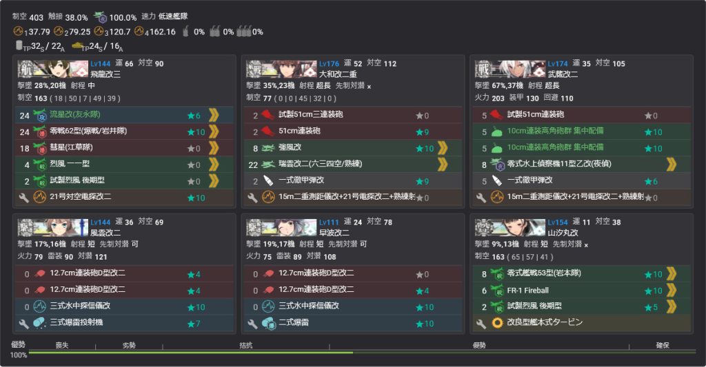 - 索敵(分岐点係数2で索敵スコア66以上)
