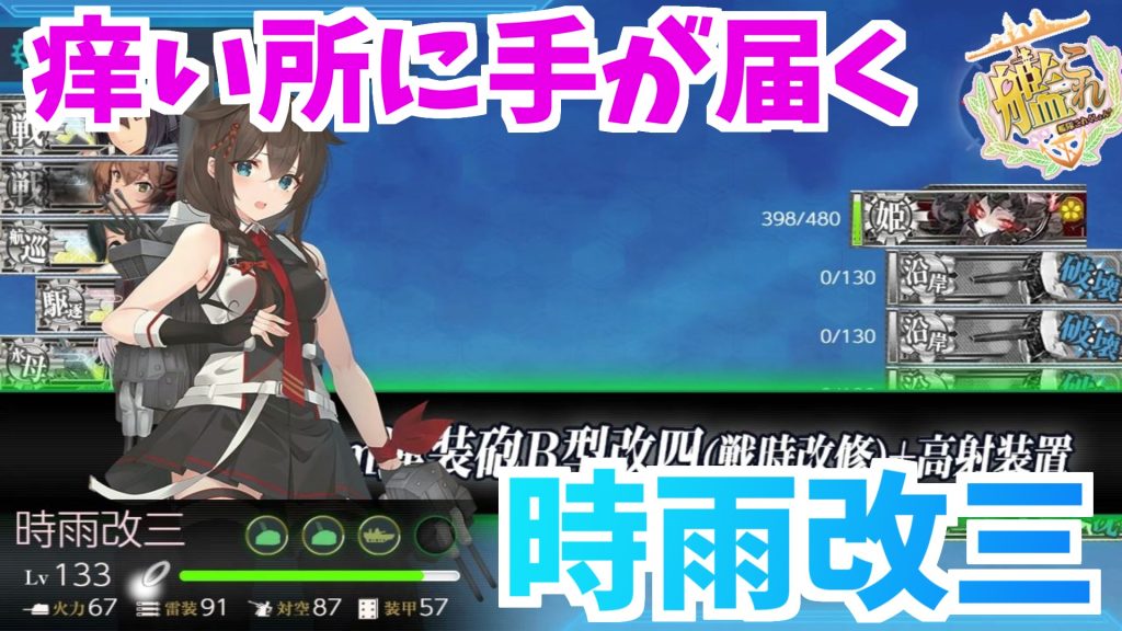 時雨は増設に電探マストで1スロ対潜させつつ汎用対空カットイン装備