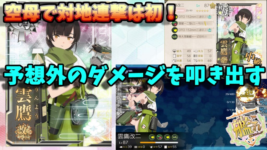 連撃させる事はないと思いますが雲鷹改二でも200オーバーダメージを出す事が出来ます